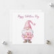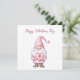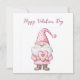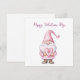 cute card with a cartoon pink gnome in love with a heart for the holiday in February on Valentine's Day