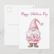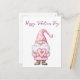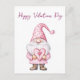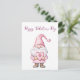 cute card with a cartoon pink gnome in love