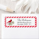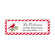 Cute cardinal standing on Holly leaves with red and white striped frame address Labels. Images can be customised.
