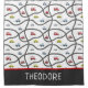 Cute personalised car-themed shower curtain for a kid's bathroom with roads and different vehicle illustrations. Add the little boy's name at the bottom.