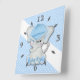 Cute cartoon baby elephant on a blue white polka d square wall clock