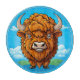 Expressive cartoon bison in a colourful setting, showing character and cheerfulness against a vibrant background including a blue sky with soft clouds and fields.