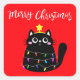 Cute cartoon black cat Christmas tree Square Sticker