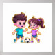 Cute Cartoon Boy and Girl Playing Soccer Together Poster