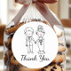 Cute Cartoon Bride Black White Thank You Wedding Classic Round Sticker