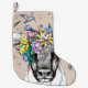Cute cartoon bull in a floral wreath. Bright portr Small Christmas Stocking