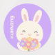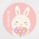 Cute Cartoon Bunny & Flowers Custom Name Pastel Pink Labels
