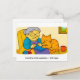 Cute Cartoon Cat Resting on Knitting Grandma Postcard