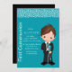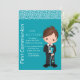 You will love this teal background with a cartoon boy dressed for his first communion with his rosary and bible.