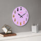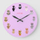 Cute cartoon cats on pinkish violet Wall Clock. Cats are like cations! Cation text can be personalised.
