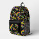 Cute Cartoon Chameleons Bright Colours, Black Printed Backpack