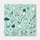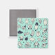 Refrigerator magnet with cute cartoon characters on a teal background.