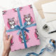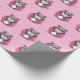 Cute Cartoon Chibi Kawaii Cat On Pink Wrapping Paper