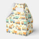 This delightful personalised favour box features an array of adorable cartoon construction vehicles, including dump trucks, excavators, bulldozers, and cranes, all with friendly faces.