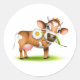 Cute Cartoon Dairy Cow with Flower and Grass Classic Round Sticker