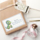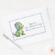 A fun name tag for kids featuring a friendly little green dinosaur with blue spikes and a yellow tummy, personalised with your text. Great for back to school, field trips, family reunions and more. Text can be deleted so you can write on each sticker individually.