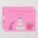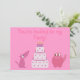 Girl’s pretty pink customisable birthday party invitations with a cute cartoon dog, cat and cake with candles. The background colour and text are customisable by clicking on the “Customise it” button – there are loads of colours and fonts to choose from. I have matching envelopes and stamps in my store. If you need any assistance in customising your product please contact me through my store and I will be more than happy to help.