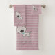 Cute Cartoon Dogs In Love,Stripes -Personalised Bath Towel Set