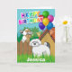 Doggy neighbours celebrating your birthday with balloons and bunting.