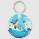 Cute Cartoon Dolphin Splashing in Water Key Ring
