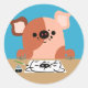 This cute cartoon pig has been creative with ink and brush, drawn a self-portrait and stamped his own snout onto the sheet, to complete the likeness :) Fully customisable and available on various products. Part of a serie of little pigs at study, sitting at a desk in front of a sheet of paper.