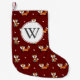 Cutesy woodland foxes pattern with accenting white polka dots over a dark red background and featuring your personalised grey monogram letter.