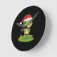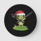 Cute Cartoon Frog Character Wearing a Santa Hat on Round Clock