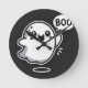 A cheerful and playful cartoon ghost saying 'Boo' in an adorable black-and-white design perfect for Halloween themes,
