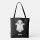 Cute Cartoon Ghost With Custom Name White Black Tote Bag