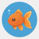 Cute Cartoon Goldfish on Blue Classic Round Sticker