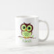 The mug is great! Zazzle sent me a gift certificate for my birthday and I used it to help pay for a mug I've been wanting. It's a 15 oz mug, perfect for the 10oz setting on my Keurig with room for flavored Coffeemate and whipped cream. Plus with a cute green owl and my name on it there's no doubt whose coffee it is! lol. The printing was just as I expected it to be from the picture on the web. It's a quality print with the same colors and spacing where my name is printed. It's already been washed a number of times and it still looks like new every time.