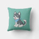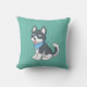 Cute Cartoon Husky Puppy Dog on Green Cushion