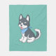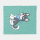 Cute Cartoon Husky Puppy Dog on Green Fleece Blanket