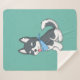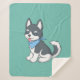 Cute Cartoon Husky Puppy Dog on Green Sherpa Blanket