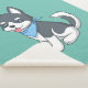 Adorable cartoon black and white husky dog with blue eyes and matching blue bandana.