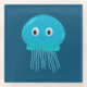 Cute Cartoon Jellyfish In Blue Ocean Glass Coaster