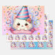 Wrap your gifts in style with our adorable Cute Cartoon Kawaii Kitty Cat Happy Birthday Wrapping Paper Sheets featuring a cat wearing a birthday party hat surrounded by confetti. Perfect for cat lovers!