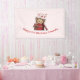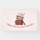 Birthday banner with a cute drawing of a little kitten poking its head out of a gift box.