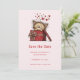 Cute Cartoon Kitten in a Box with Hearts Birthday Save The Date