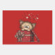Box is wrapped in red, and a bow with a little hearts pattern.