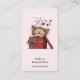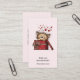Business card with a cute drawing of a little kitten poking its head out of a gift box.