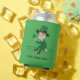Can Cooler with an Illustration of a cute smiling leprechaun wearing a green suit, a top hat while holding a shamrock leaf