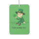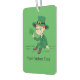 Air Freshener with an Illustration of a cute smiling leprechaun wearing a green suit, a top hat while holding a shamrock leaf