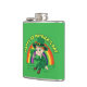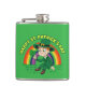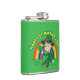 Cute cartoon leprechaun with shamrock and rainbow hip flask