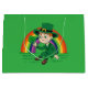 Cute cartoon leprechaun with shamrock and rainbow large gift bag