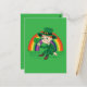 Cute cartoon leprechaun with shamrock and rainbow postcard
