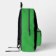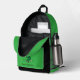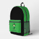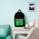 Backpack with an Illustration of a cute smiling leprechaun wearing a green suit, a top hat while holding a shamrock leaf