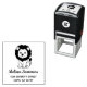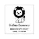 Cute cartoon illustration of a lion with fluffy mane sitting. Customizable text.
