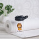 Cute cartoon illustration of a lion with fluffy mane sitting. Customizable text.
