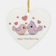 Cute Cartoon Lovebirds Pink Hearts Valentine’s Day Ceramic Tree Decoration
